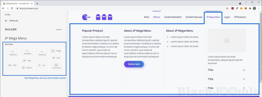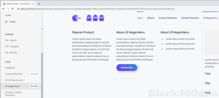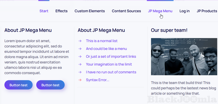 We utilize the Builder module to get this to work. This means its a very sleek and non-intrusive way of doing this. You create a Builder type module and then connect this to a special JP Mega Menu item that triggers the unfolding of this menu. Please watch this promo video below to learn exactly how its done!