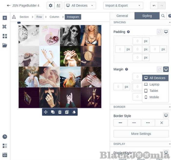JSN PageBuilder 4 integrates the automatic resized mechanism that can help your website layout autofit nicely on all devices such as desktop, laptop, tablet and mobile. Moreover, JSN PageBuilder 4 supports mobile- optimisation that makes your website present perfectly on all types of mobile regardless of the operating system without any coding or configuration.