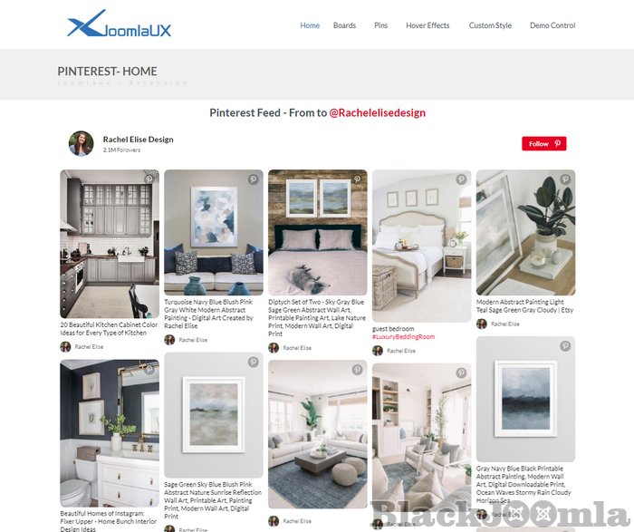 JUX Pinterest Feed has been released to cover you everything you need to grow your community from the Pinterest profile. Furthermore, this Joomla module also helps you manage and customize the way your Pinterest pins or boards appear on the website.