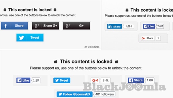 Social Content Locker get supports of 4 largest social networks that are Facebook, Twitter, LinkedIn and Google + and 7 social buttons: Facebook Like, Facebook Share, Twitter Tweet, Twitter Follow, Google +1, Google Share and LinkedIn Share.