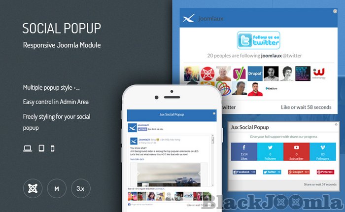 JUX Social Popup is designed with different layout and functions.