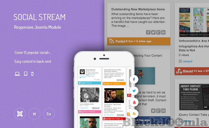 JUX Social stream can be displayed neatly on any devices include mobile or tablet. Depending on the screen size, it will automatically adjust to fit it.
