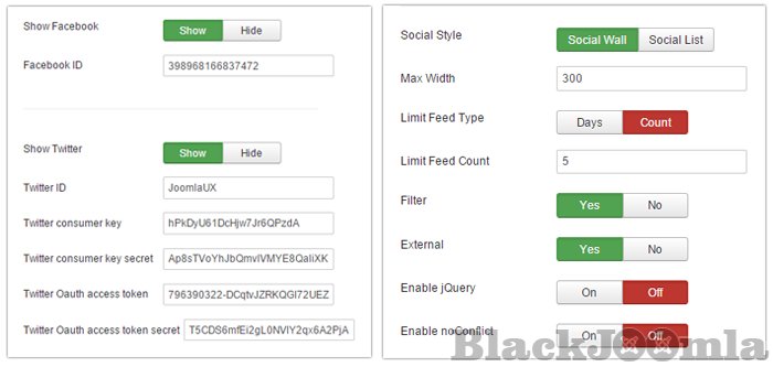 Admin control is the most powerful area where you can manage which social networks will be displayed, limited feed count, social layout, ect.