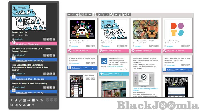 JUX Social Stream gives you a single stream for all of your social network update, and you can display them in two different formats: A rotating feed (list layout), or network wall (masonry layout).