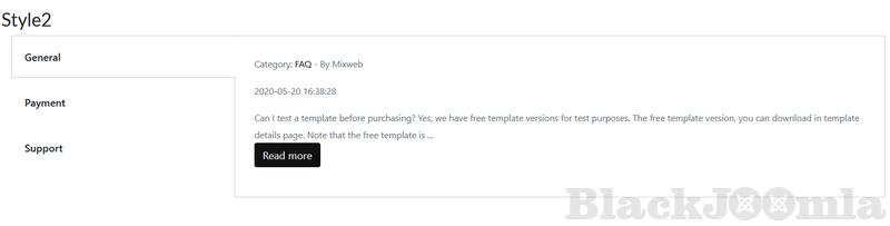 It is easy way to display all articles related to faq, in one single page ( accordion or tabs style ). It is based in bootstrap 4 and bootstrap 5. Chose the bootstrap depending on which bootstrap your template is using.