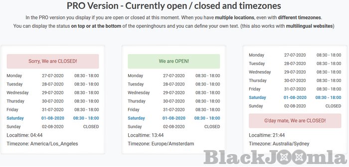 Exceptional openings. Automaticly change the openinghours when your shop is open on shoppingsundays, or show closed when you have a (national) holiday. We've added also an option to change the complete openinghours for a season.