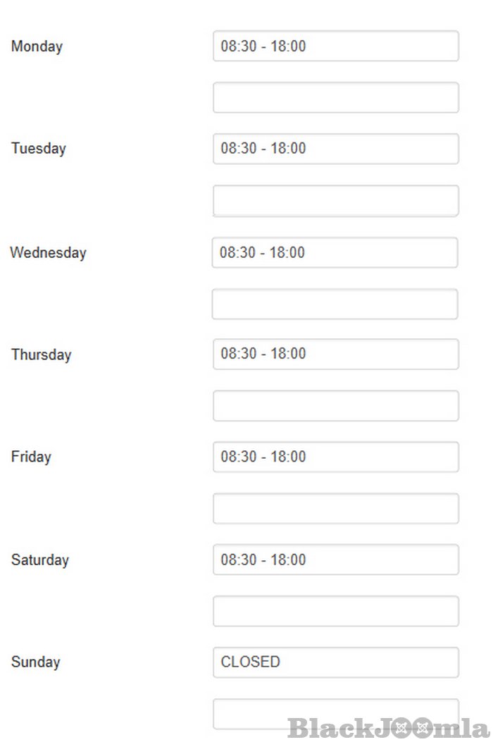 At the bottom there is room for notes, for example different openings, such as "open this sunday!", "only by appointment" etc