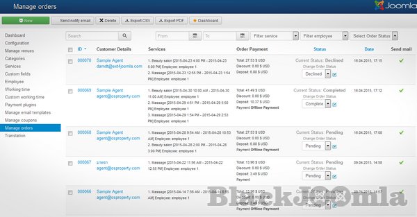 Easy to manage Orders list, Categories, Venues, Services(Appointment types) , Employees (Staff) and Custom fields
