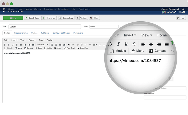 Automatic Joomla Vimeo video embeds