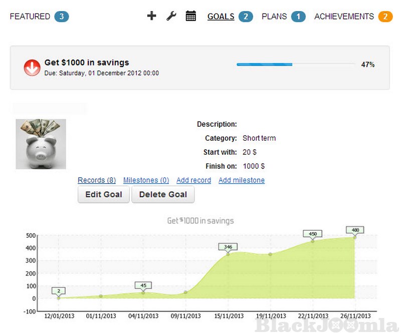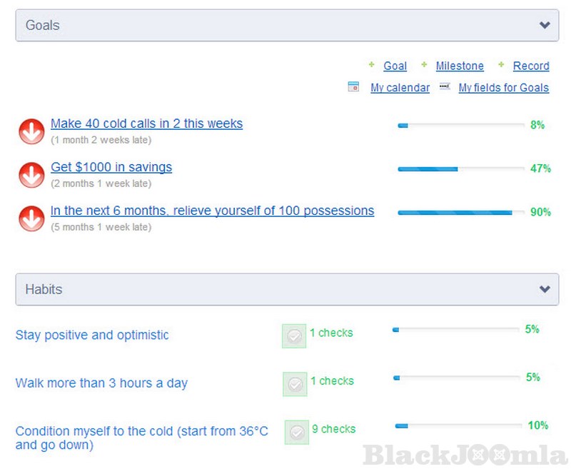 Personal Goals Manager Component is specially designed to help your Joomla! site users to set personal goals and plans, track achievements progress and organize personal schedule management. The personal manager extension can also be used to improve habits quickly and without great efforts.