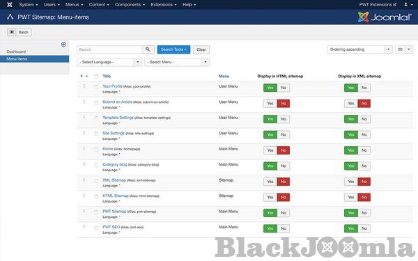 When adding or editing a menu-item you can directly configure if the page should be displayed in the HTML Sitemap and XML Sitemap. For menu items that display a category you can choose to include all articles of the category as well.