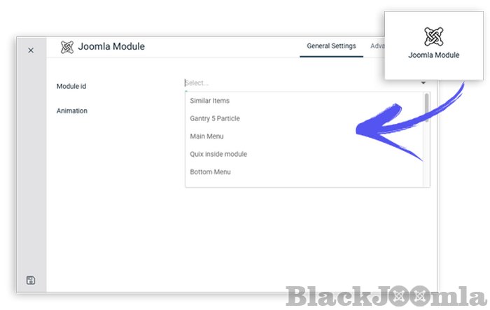 Forget the messy module manager and load any Joomla module from Quix builder interface. Just add Joomla Module element and select any available module you have.