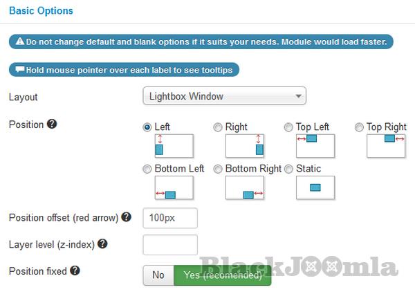 • Positions of module's toggler tab: left, right, top, bottom, static