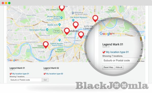 With Shack Locations, you can display a map with as many markers as you need. You can use location types to categorize and customer your map markers.