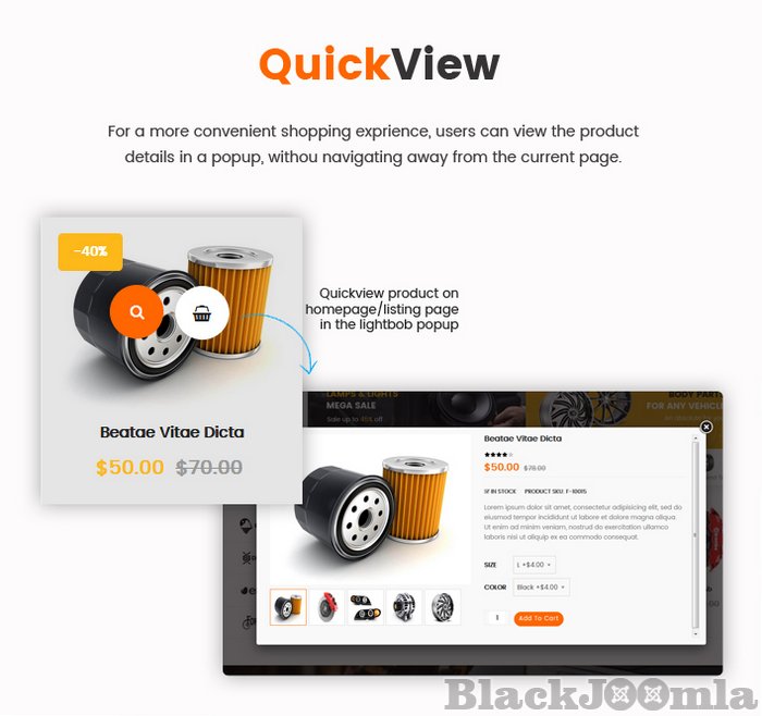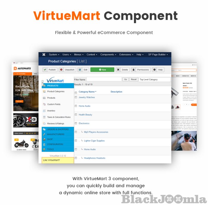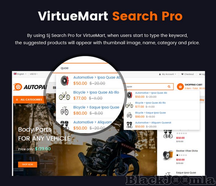 Sj Autoparts is powered with VirtueMart 3 component therefor it comes with lots of advanced eCommerce features and functions such as: Mega Menu, Drag & Drop Builder, Ajax Filter for VirtueMart, Mini Cart Pro, Product Quickview, RTL language, 65+ Useful ShortCodes built-in..... With Sj Autoparts, you can quickly setup your online store just in minutes without much coding knowledge.
