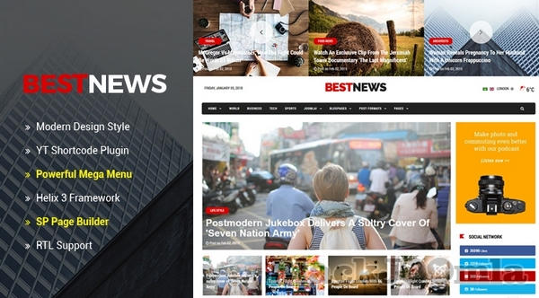 Sj BestNews is a modern, creative and professional news, magazine Joomla template which is powered by Helix 3 Framework. This responsive Joomla template comes with lots of real world features that you can get easy to use: Sp Page Builder (free), responsive design, 65+ useful shortcodes, powerful mega menu, RTL supported, sample data included and many more.