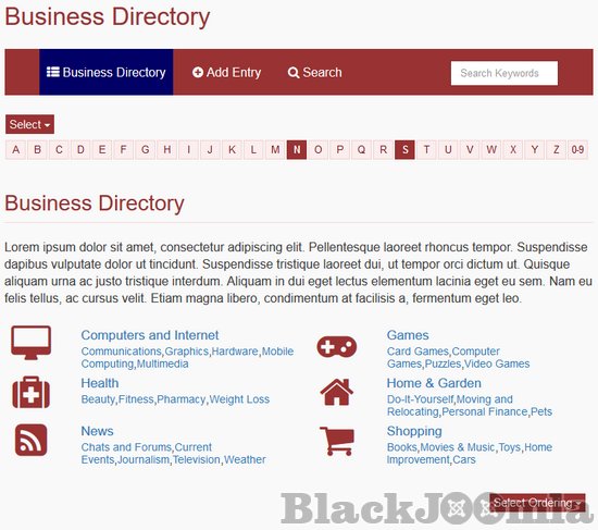 - Various pre-defined SobiPro templates are available such as sorting of entries, restaurants guide, creating of packages, a members directory