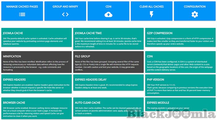 Check and fix Joomla inbuilt optimization (cache and Gzip): Check for Joomla default performance system activation