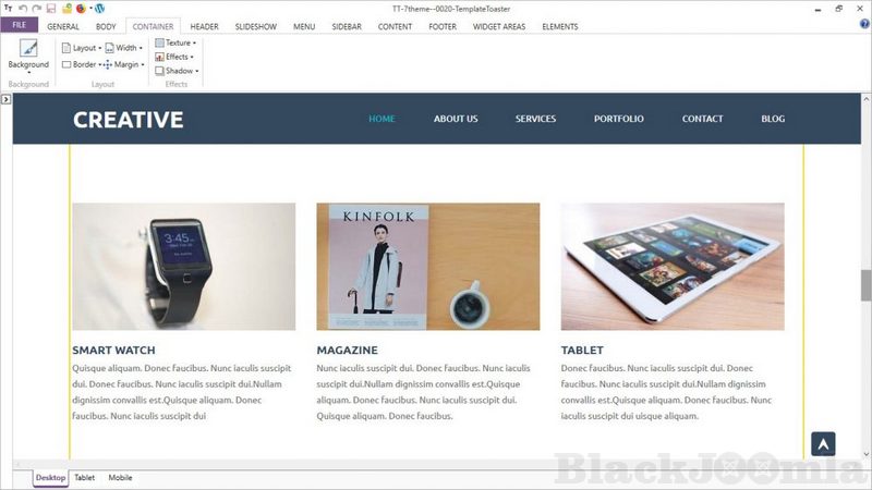 TemplateToaster support responsive web design which means no matter on which device your website is viewed on, your website will perfectly fit into the display.