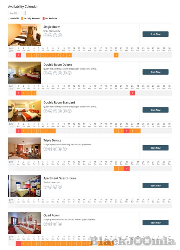 - Powerful booking system in the administrator with calendars for the availability