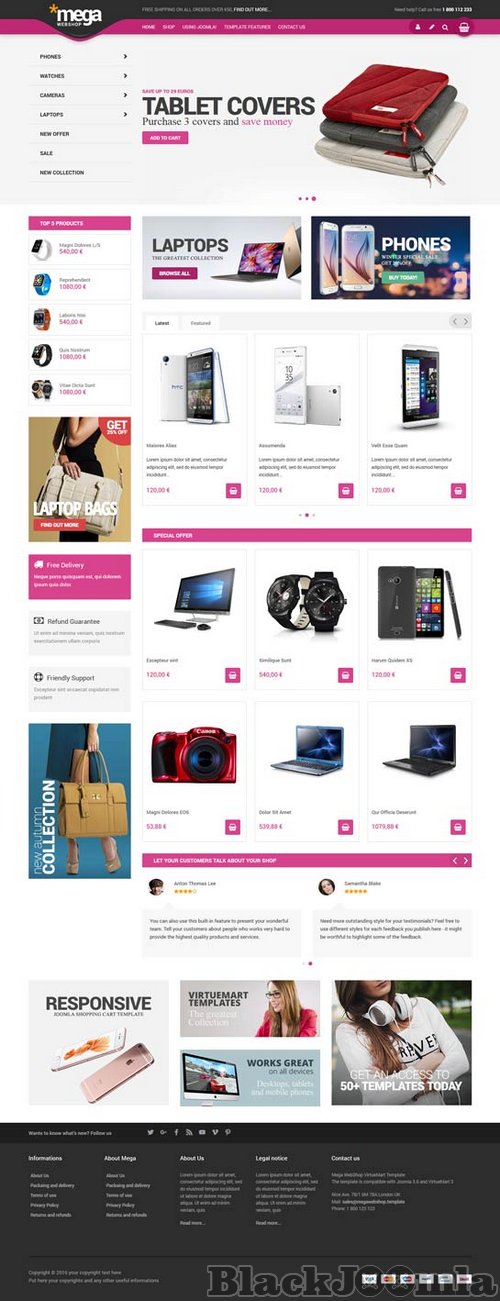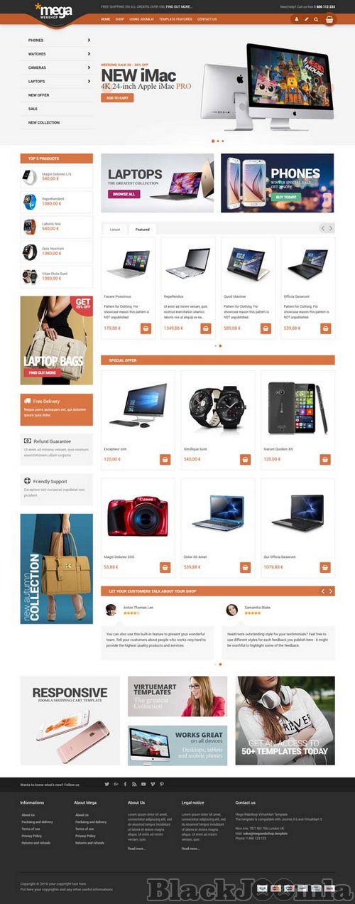 Mega web shop is a fully responsive Joomla template that adpats to all screen sizes to give your website visitors the best mobile friendly shopping experience at your website.