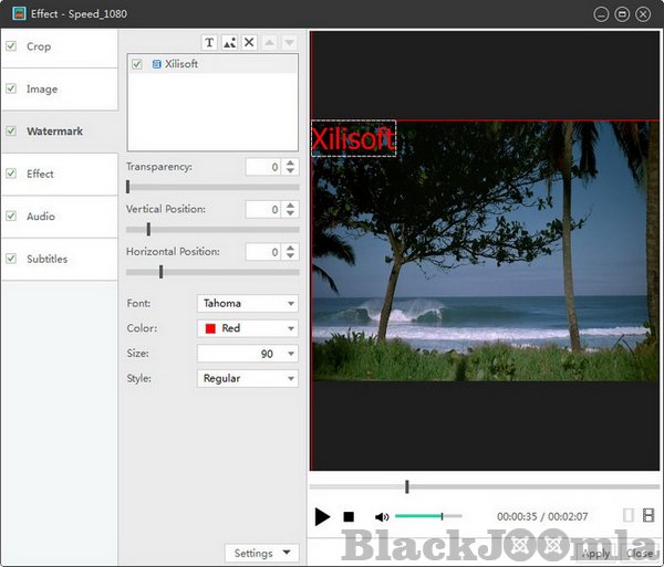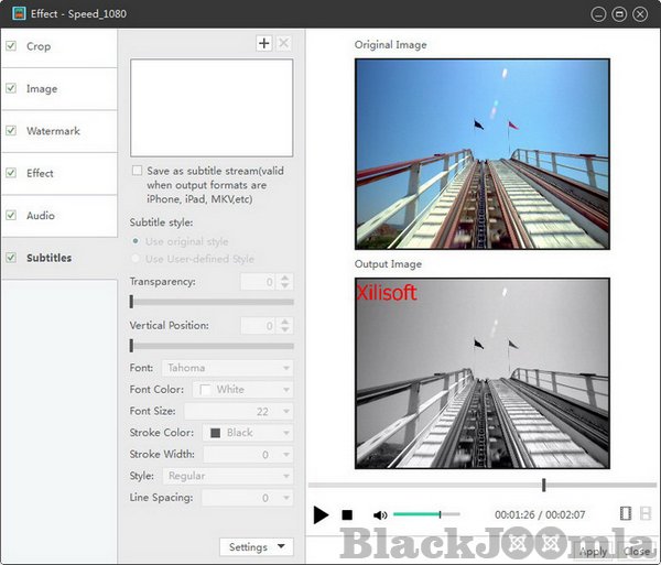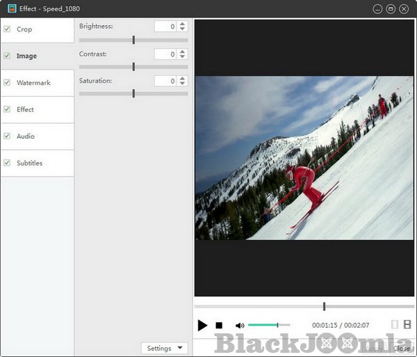 Crop the picture frame, adjust video brightness/saturation/contrast. Add artistic effects, and personalize your video with picture and text watermarks.